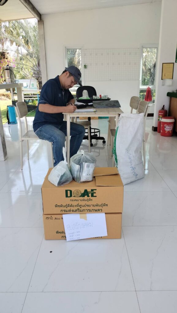 10 ก.พ.69 นายฉลอง คงสมของ ผู้อำนวยการศูนย์ฯ มอบเมล็ดพันธุ์และต้นพันธุ์พืช โครงการผลิตพืชพันธุ์ดีเพื่อช่วยเหลือเกษตรกรผู้ประสบภัยพิบัติและใช้ในภารกิจกรมส่งเสริมการเกษตร ปี 2568 ให้สำนักงานเกษตรอำเภอสร้างคอม จังหวัดอุดรธานี
