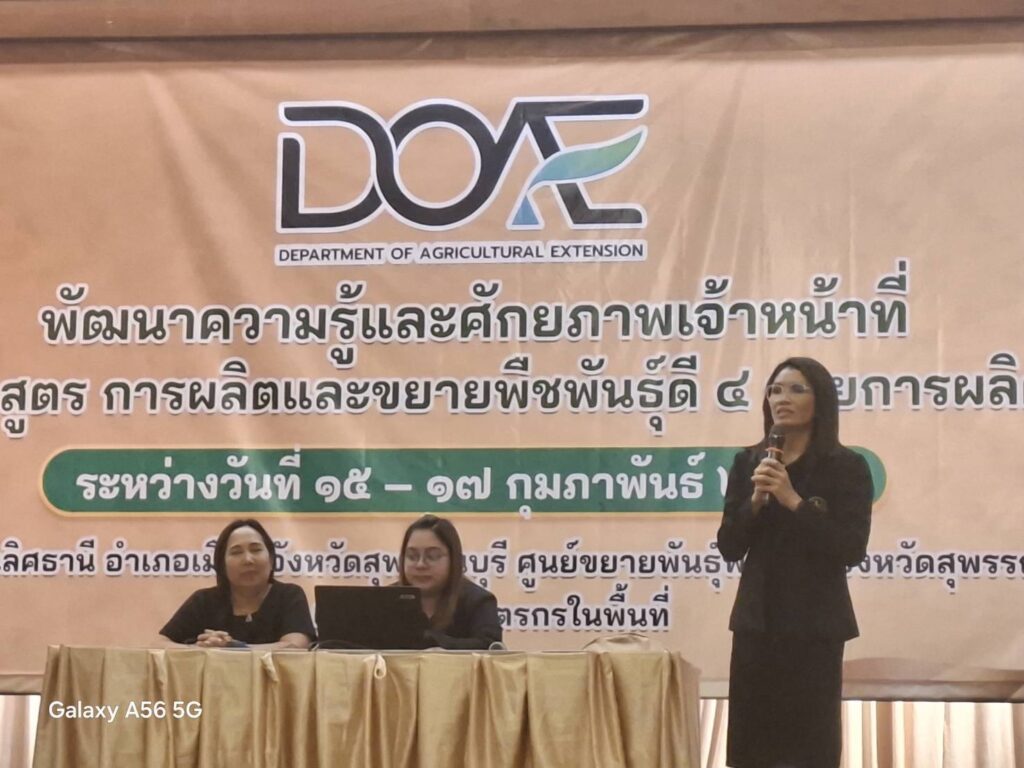 16 – 17 ก.พ.69 นายเฉลิมพน ทวีผล และนางสุมลฑา คำโฮง นักวิชาการส่งเสริมการเกษตรชำนาญการ เป็นวิทยากรในการพัฒนาความรู้และศักยภาพเจ้าหน้าที่ หลักสูตร การผลิตและขยายพืชพันธุ์ดี 4 สายการผลิต