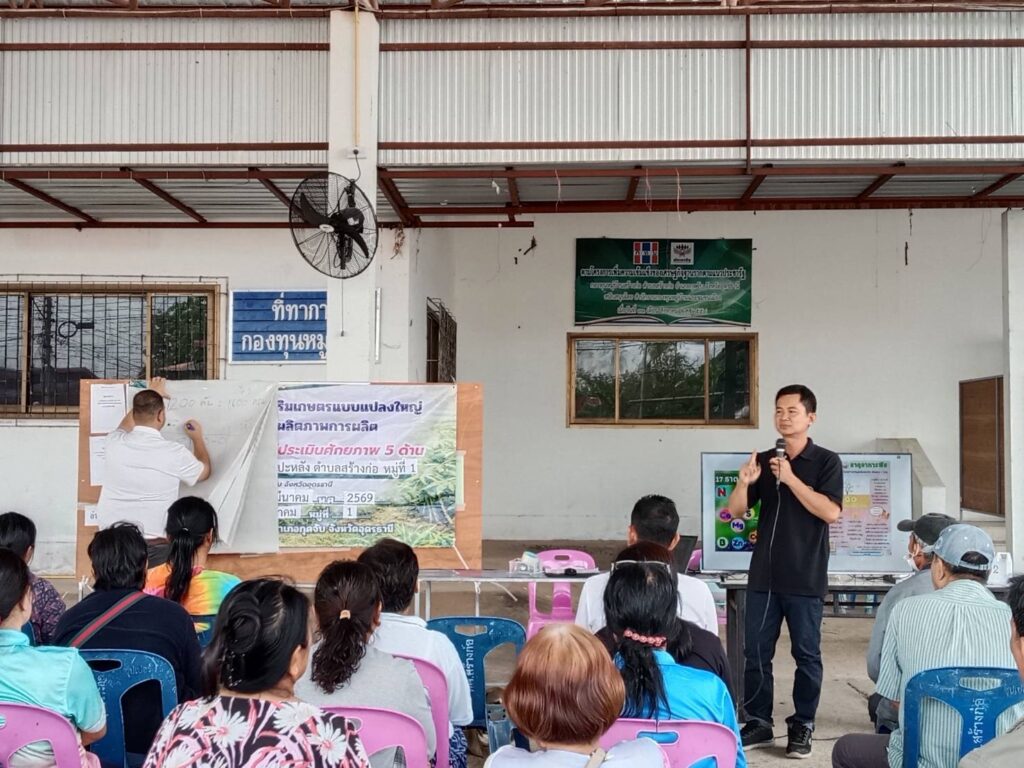 วันที่ 11 มีนาคม 2569 นายพิชิต บุตรดี นักวิชาการส่งเสริมการเกษตรชำนาญการ ศูนย์ขยายพันธุ์พืชที่ 10 จังหวัดอุดรธานี เป็นวิทยากร เรื่อง การบริหารจัดการแปลงมันสำปะหลังอย่างถูกวิธีเพื่อเพิ่มผลผลิต การสร้างมูลค่าเพิ่มจากวัสดุเหลือใช้และสาธิตการทำปุ๋ยสั่งตัดสำหรับการปลูกพืช ลดต้นทุน เพิ่มผลผลิต ในการฝึกอบรมถ่ายทอดความรู้แก่เกษตรกรกลุ่มแปลงใหญ่มันสำปะหลัง หมู่ที่ 2 ตำบลขอนยูง ณ ศาลาประชาคม หมู่ที่ 2 ตำบลขอนยูง อำเภอกุดจับ จังหวัดอุดรธานี ลิงค์เพิ่มเติม
