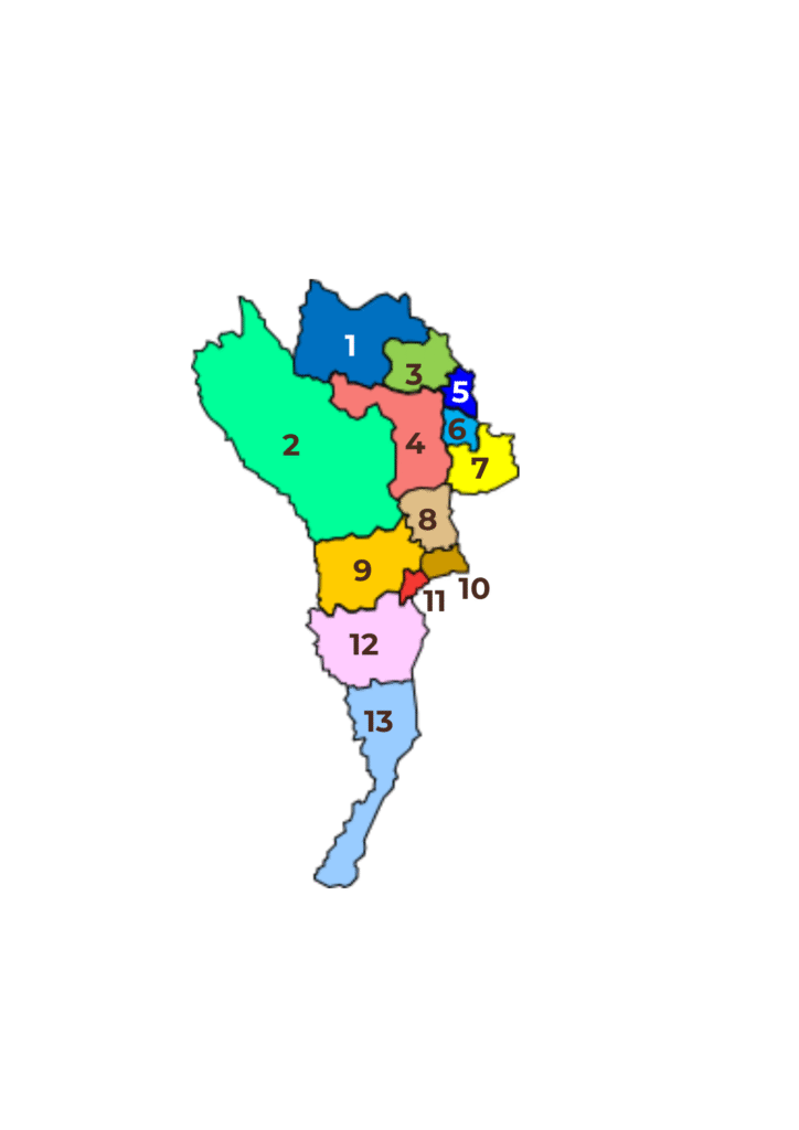 พื้นที่รับผิดชอบ 13 จังหวัด ดังนี้