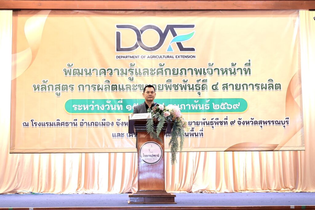ในการนี้ นายธนากร โปทิกำชัย ผู้อำนวยการศูนย์ขยายพันธุ์พืชที่ 3 จังหวัดนครราชสีมา พร้อมด้วย นายอภิสิทธิ์ ทินคำ นักวิชาการส่งเสริมการเกษตรชำนาญการ และ นายรัฐวงศ์ ชีวะวิโรจน์ นักวิชาการส่งเสริมการเกษตร เข้าร่วมอบรมหลักสูตรดังกล่าว ระหว่างวันที่ 15-17 กุมภาพันธ์ 2569 ณ โรงแรมเลิศธานี อำเภอเมือง จังหวัดสุพรรณบุรี ศูนย์ขยายพันธุ์พืชที่ 9 จังหวัดสุพรรณบุรี และเครือข่ายเกษตรกรในพื้นที่