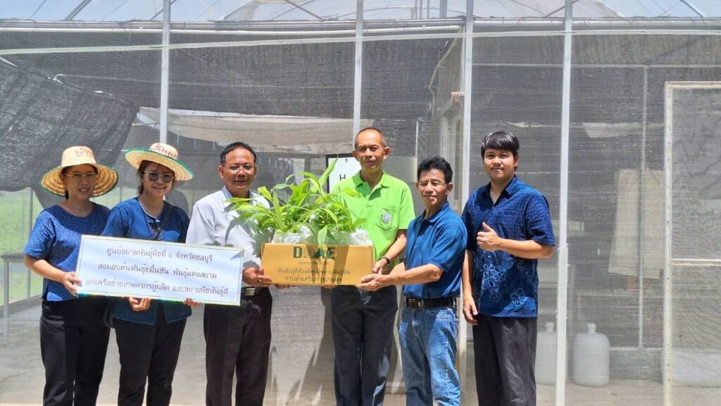กลุ่มวิสาหกิจชุมชนสวนเกษตรสันติราษฎร์ เดิมปลูกพืชชนิดเดียวคือ กระเพรา เนื่องจากจะสร้างผลิตภัณฑ์ใหม่เป็นพริกแกง จึงมีความต้องการปลูกพืชชนิดอื่นในการทำเครื่องพริกแกง และผลิตภัณฑ์อื่นๆด้านสมุนไพร เช่น ขมิ้นชัน จึงได้รับการคัดเลือกให้เป็นเครือข่ายผลิตพืชพันธุ์ดี ของศูนย์ขยายพันธุ์พืชที่ 1 จังหวัดชลบุรี