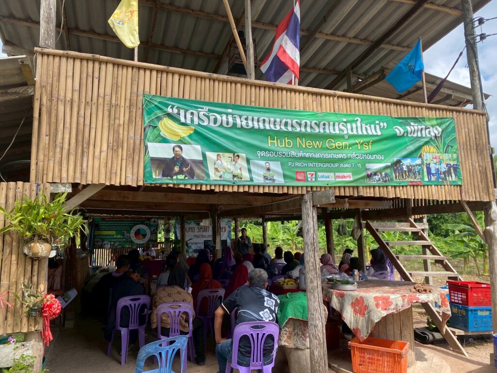การรวมกลุ่มเกษตรกรรุ่นใหม่ (Young Smart Farmer) ที่ทำกิจกรรมการผลิตกล้วยหอมทอง โดยมีที่ทำการตั้งอยู่ตรงข้ามตลาดต้นตอ ต.แม่ขรี อ.ตะโหมด จ.พัทลุง ตั้งเป็นศูนย์รวบรวมกล้วยหอมในจังหวัดพัทลุงและส่งไปยัง 7-11 เน้นส่งเสริมเกษตรกรให้เป็นผู้ประกอบการ มีการให้ความรู้เรื่องคุณภาพการผลิต มีการประกันราคา มีตลาดรองรับ และส่งเสริมสมาชิกกลุ่มอย่างเป็นระบบ